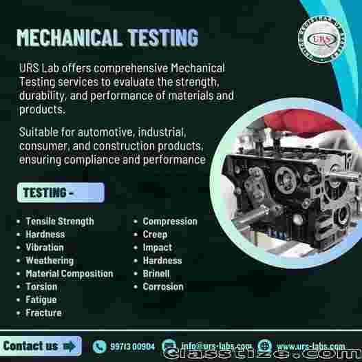 URS Lab provides reliable Mechanical Testing Services in India, ensuring the strength, durability, and performance of materials and products. Our advanced testing facilities evaluate properties such as tensile strength, compression, hardness, impact resistance, and fatigue. We support industries in meeting quality standards, improving product performance, and ensuring safety compliance with accurate and timely testing solutions.
