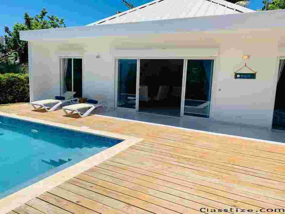 Hola!! Para los amantes de las playas tengo esta hermosa villa amueblada con piscina en las terrenas, disponible para alquiler, corta y larga estadia! Esta completamente amueblada, cuenta con 3 amplias habitaciones con vistas espectaculares!! Aire acondicionado, wifi, parqueo! A tan solo 550 mts de playa bonita! Capacidad para 8 personas. Reservala con el 50% alante. Siguenos en Facebook como Caribbean Properties y vea todas las opciones que tenemos para alquilar, invertir y comprar! Contactanos via whatsapp para unas vacaciones soñadas! Siguenos en Facebook y en las redes sociales en nuestras paginas de propiedades, vehiculos y servicios financieros. Alice W.B. 1 829 584 3911 Whatsapp Business de Caribbean Properties https://www.facebook.com/By.LeblancG 1 809 446 3911 Whatsapp Business de Luxury Rent https://www.facebook.com/Leblanc.Baez https://www.facebook.com/PrestamosyFinanciamientos 01 1 829 256 7550 Numero Local