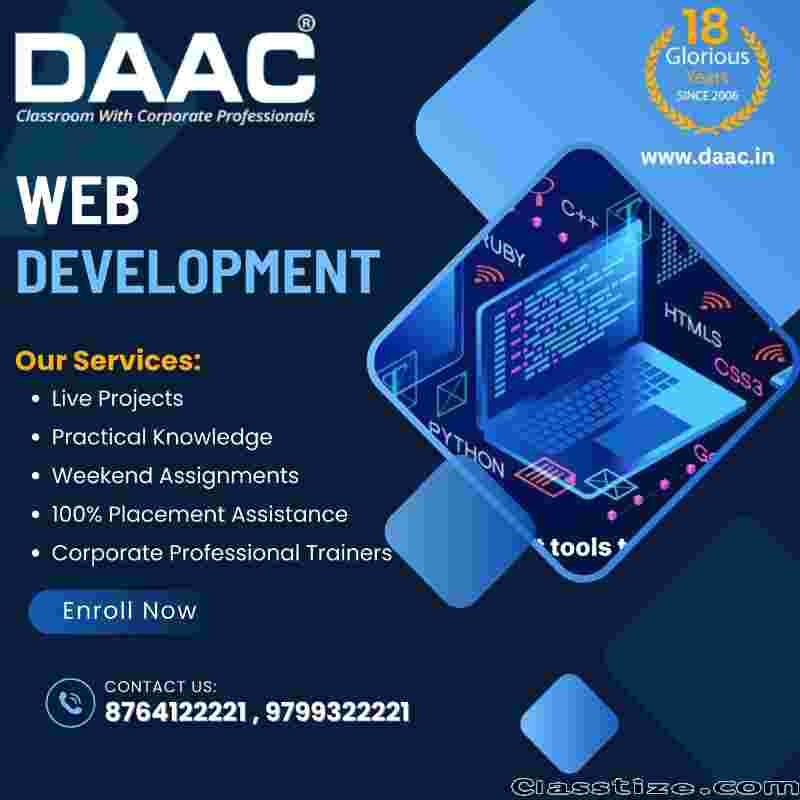 Master front-end and back-end development with the DAAC web development course in Jaipur. Learn HTML, CSS, JavaScript, React, Node.js, and more with industry experts. Enroll now!
